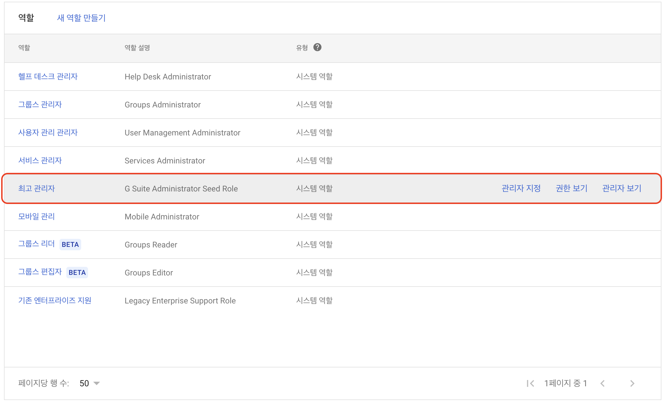 '관리자 보기'에서는 현재 지정된 관리자를 볼 수 있습니다.