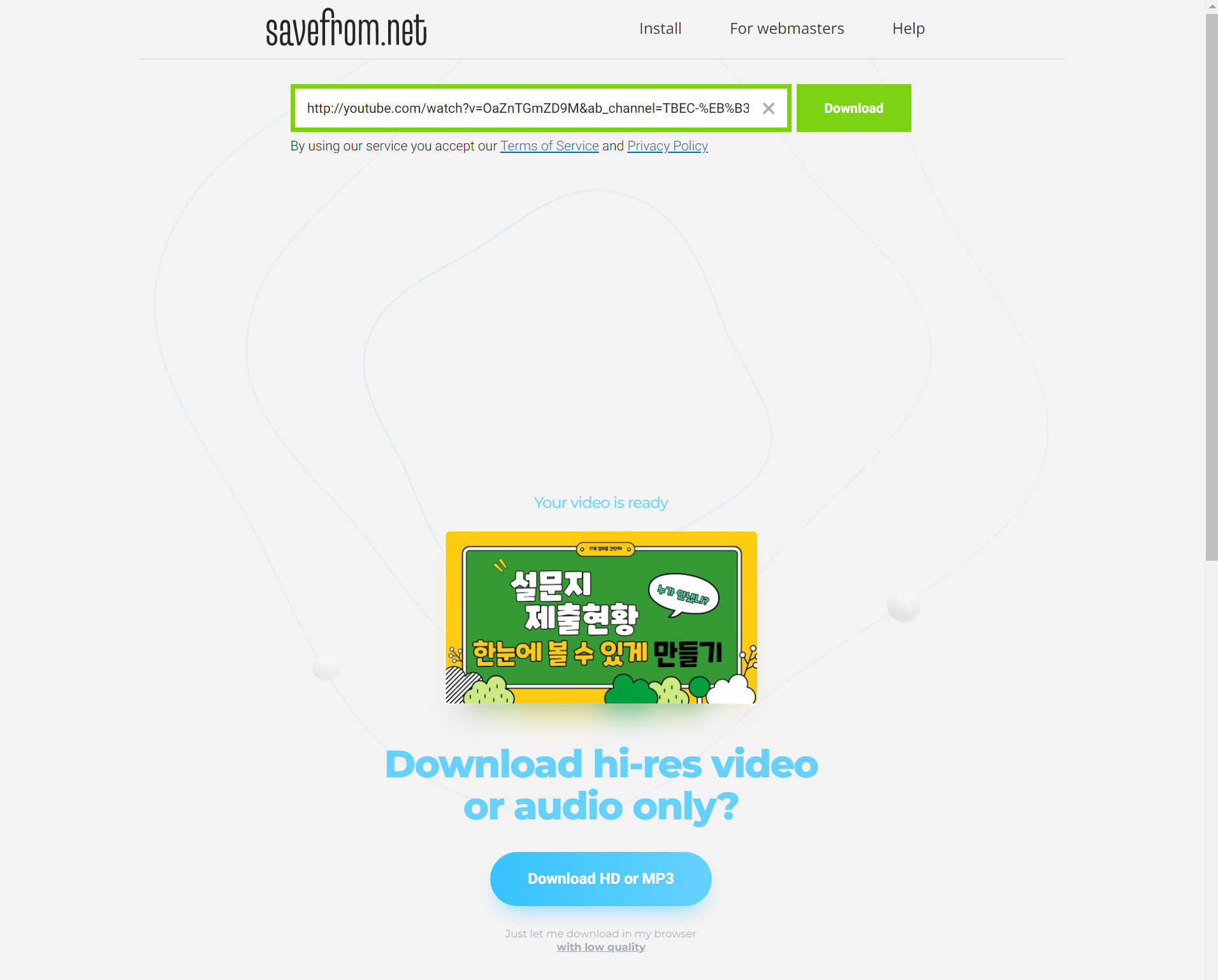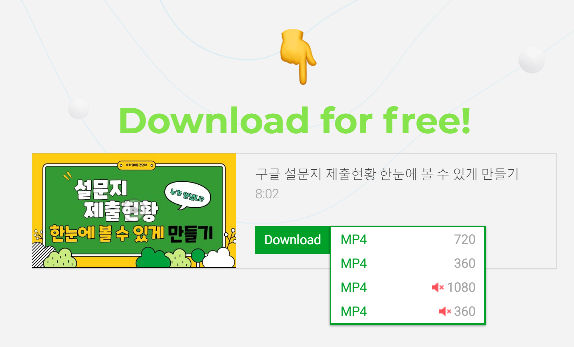 MP4 포맷의 형식으로 720p의 영상까지 무료로 다운로드 할 수 있습니다.