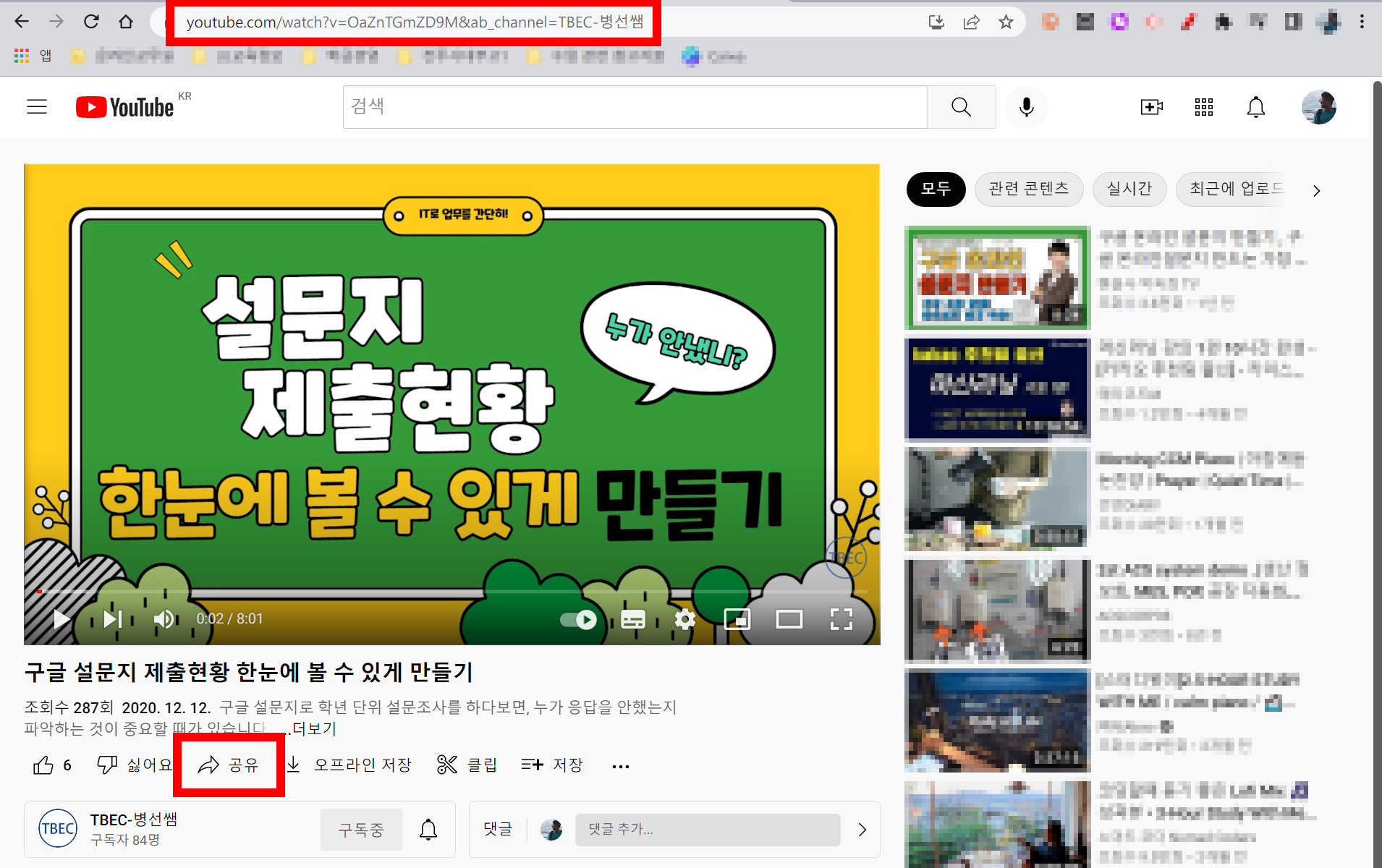 둘째, 공유 버튼을 눌러 출력되는 URL을 활용하는 것