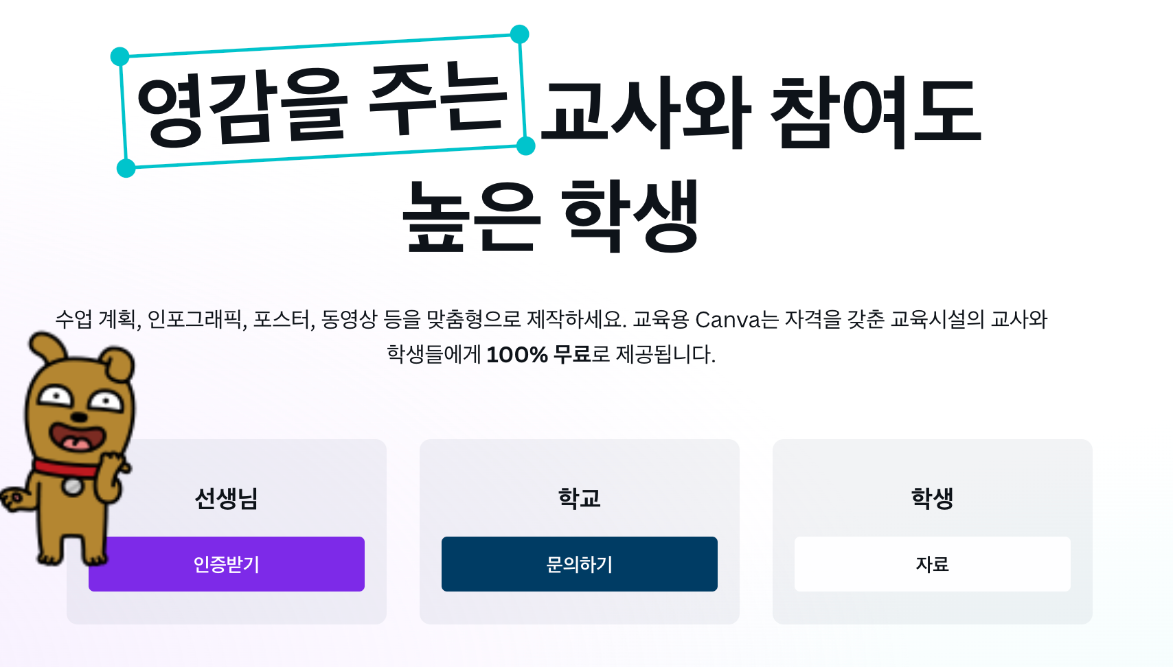 [나.다.꿀팁] Canva(캔바) 교사 인증 후 무료사용하기! 본문