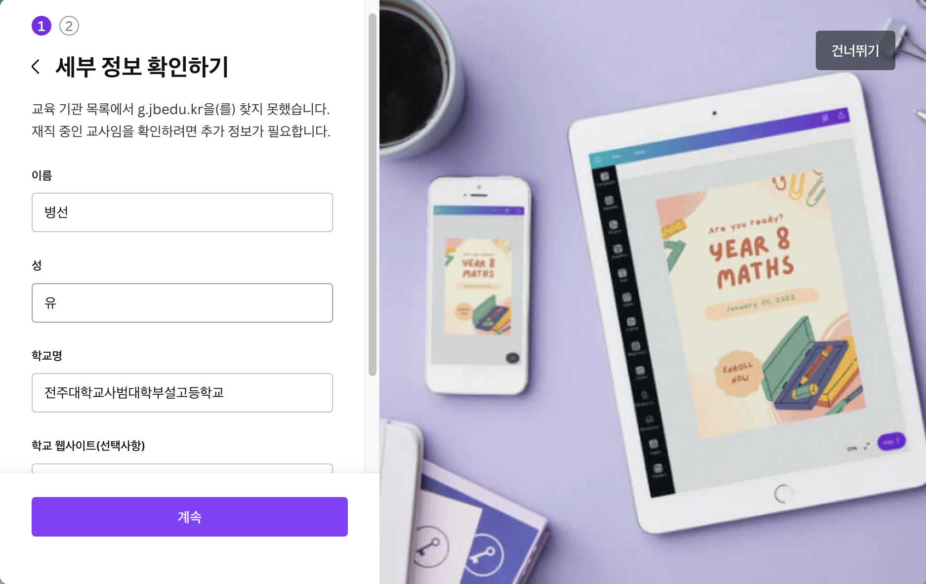 그러면 캔바에서 교사 인증받는 방법을 공유드립니다.
