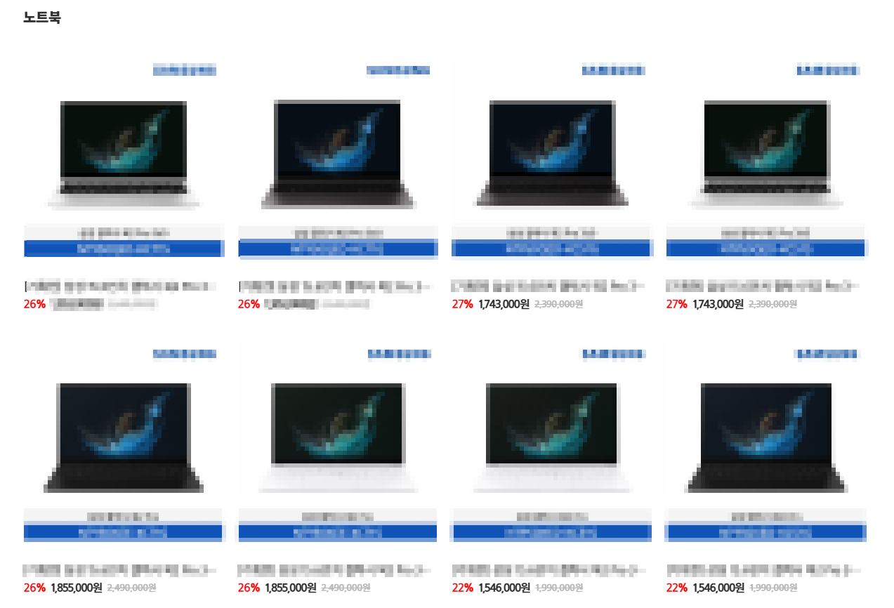 주로 삼성전자 제품을 취급하며 카테고리는 아래와 같습니다.