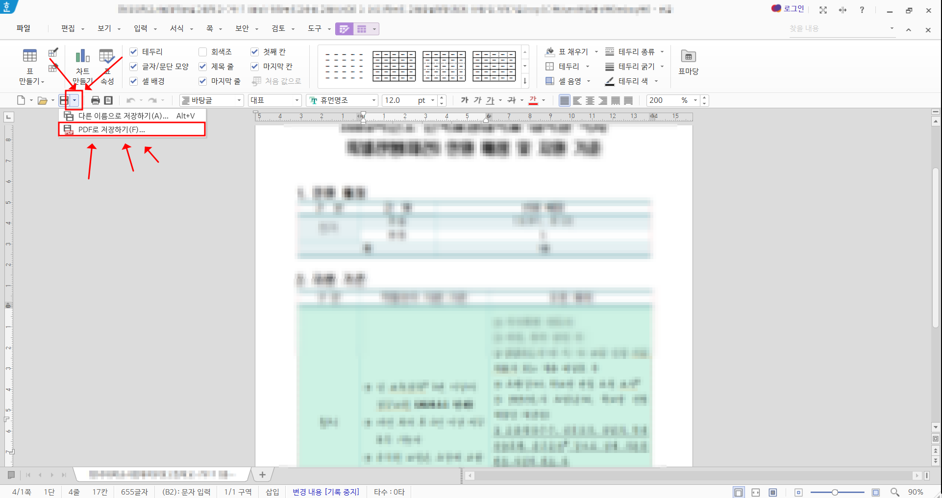 상위 버전에서는 'PDF 저장'이라는 기능을 제공해 파일을 PDF로 바로 저장할 수도 있습니다.