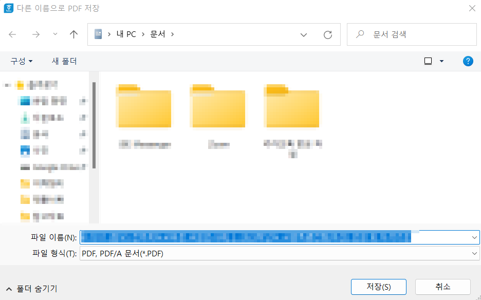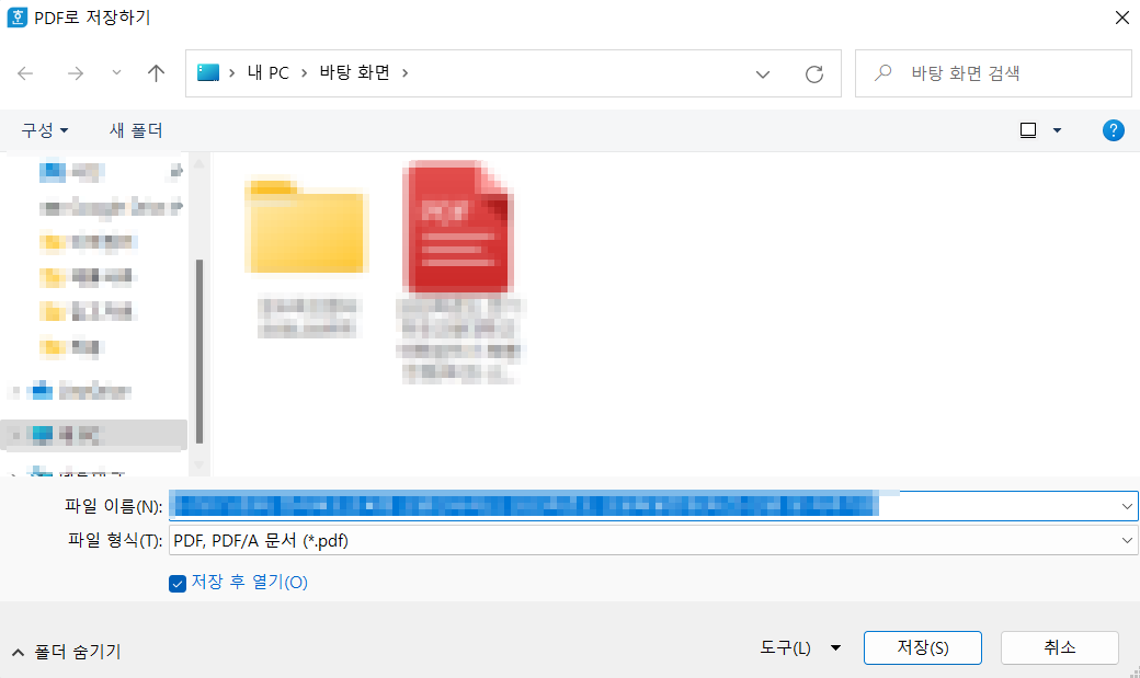 PDF로 저장하기를 누르면 '가.' 단계에서 저장 위치를 설정하던 화면과 동일한 화면이 출력됩니다.