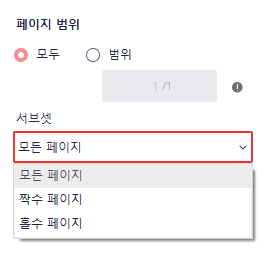 * 서브셋: 모든 페이지, 홀수페이지, 짝수페이지 중 원하는 유형을 선택할 수 있습니다.