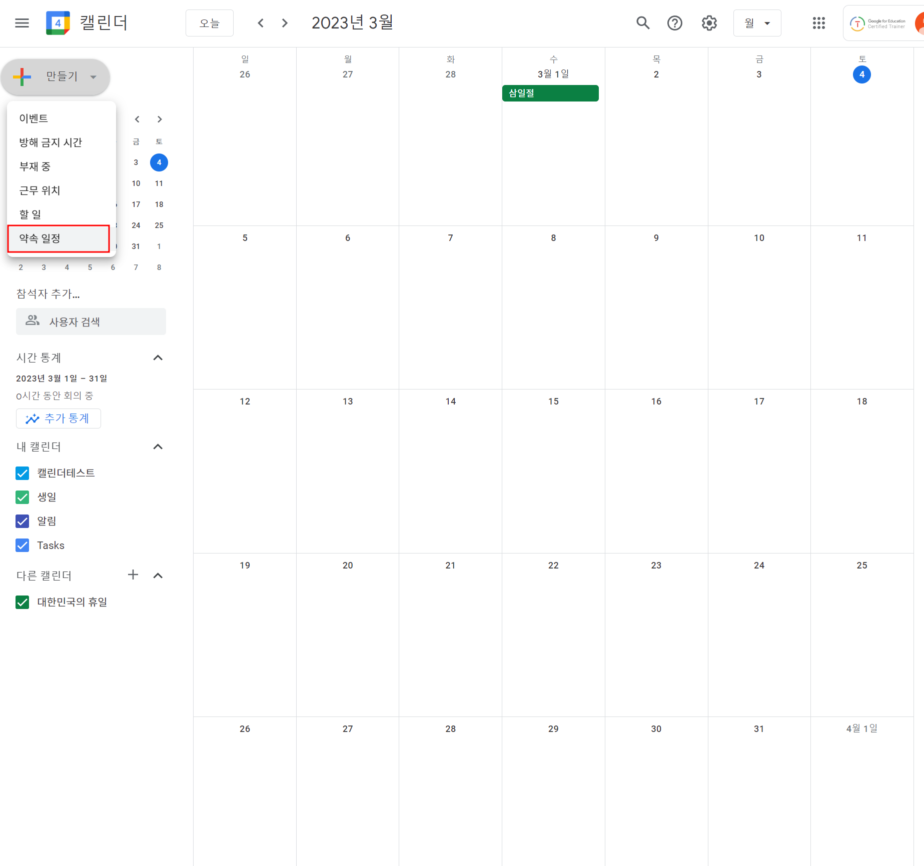 2. 구글 캘린더에서 약속일정 만들기