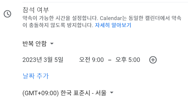 PS> 아, 근데 Google Workspace가 없는 경우에는 어떻게 해야 하냐고요? 그래서 다음 포스팅에서는 zCal을 활용한 예약일정 잡는 방법에 대해 준비하도록 하겠습니다!!