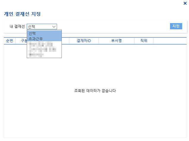 - '결재자 지정' 버튼을 눌러 결재경로를 설정합니다.