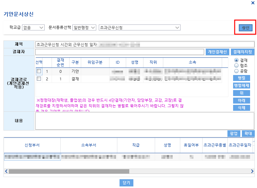 - 나이스에서 '상신함'을 눌러봅니다.