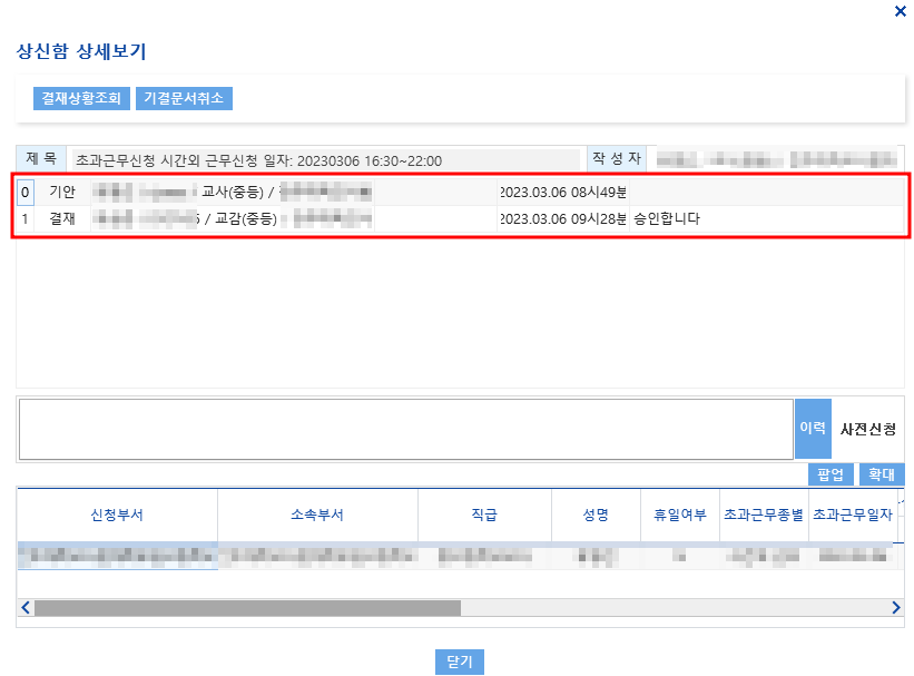 [신규교사를 위한 팁] 나이스(NEIS)초과근무 신청하기 완결 확인하기 본문