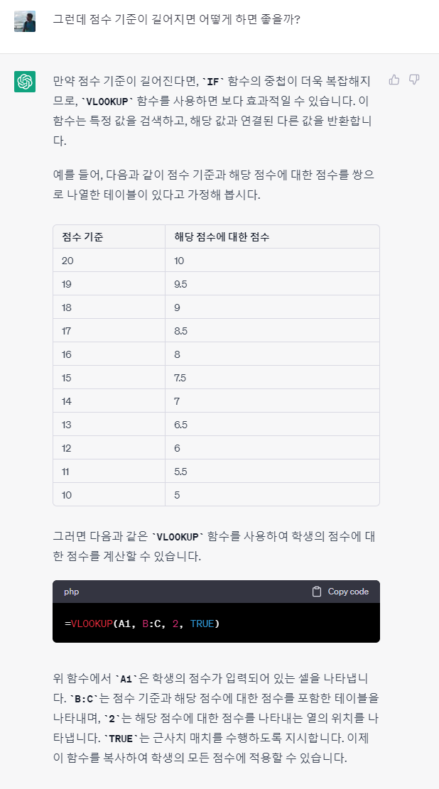 [Chat GPT] 구글 시트(엑셀) 수행평가 구간별 점수 매겨보기 본문