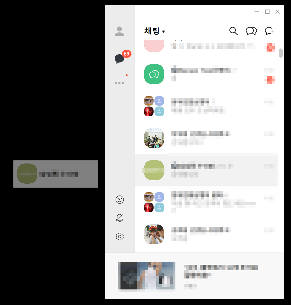 - 플로팅 띄우기 원하는 채팅창을 클릭 후 채팅창 영역 밖으로 드래그 앤 드롭합니다.