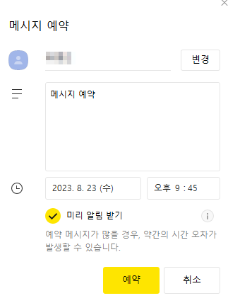 2) 예약메시지 내용과 시간을 설정 후 '예약하기'를 눌러줍니다.