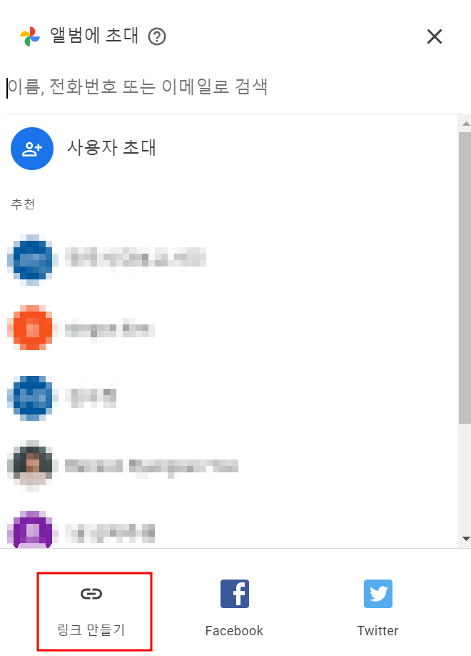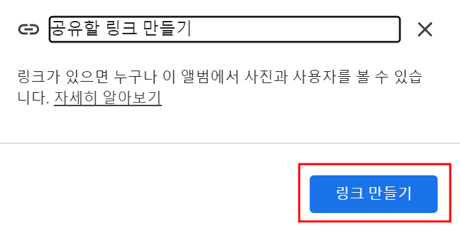 - 구글 포토 -> 앨범 -> 앨범 만들기 -> 공유링크 만들기 -> 링크 공유하기