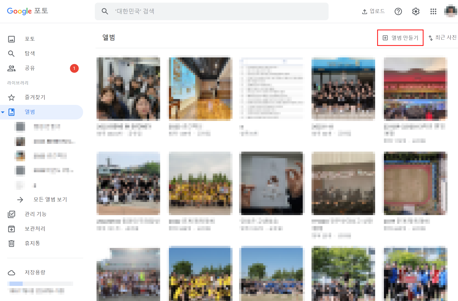 다. 앨범 만들기를 클릭합니다.