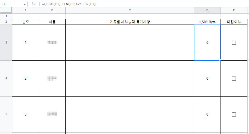 NEIS 오류메시지에서 자유로워보자! - 엑셀을 이용한 글자수 세기 본문