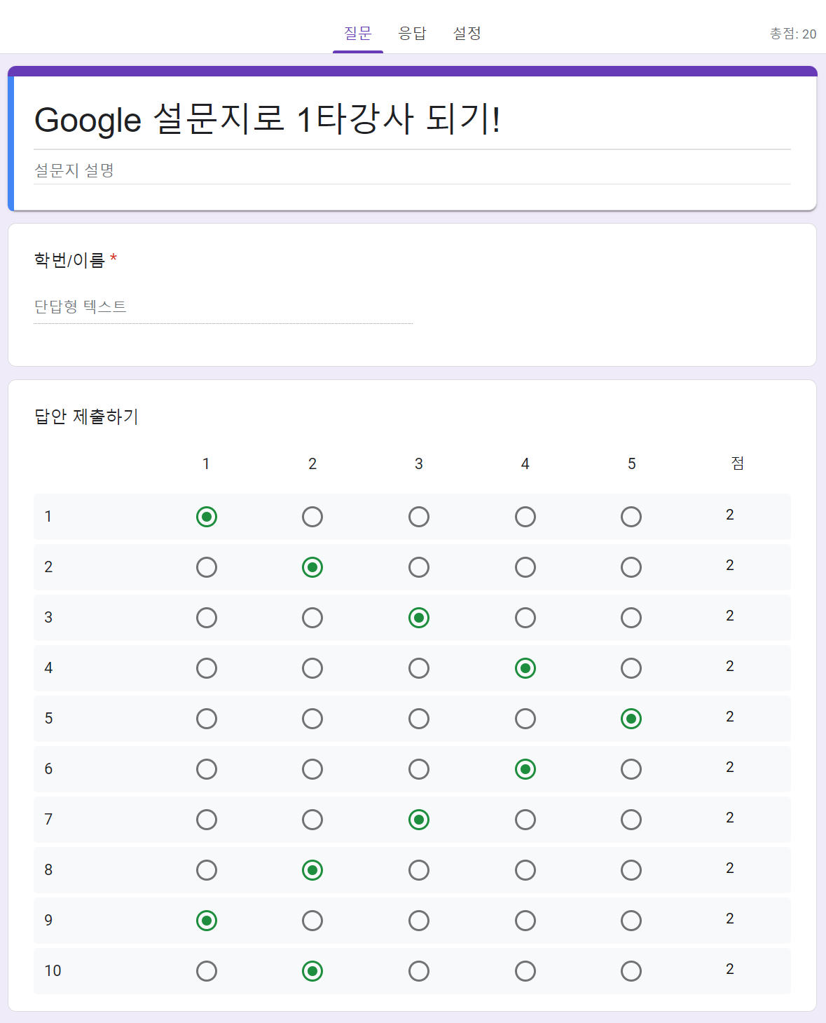 [나.다.꿀팁] 구글 설문지로 문제풀이 1타 강사 되기 본문