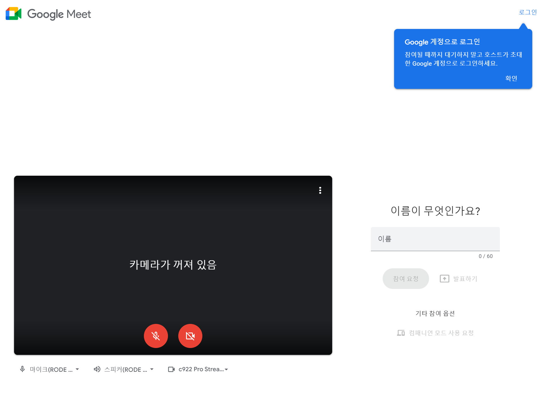 로그인없이 Google Meet 세션에 참여하기....!! 성공!