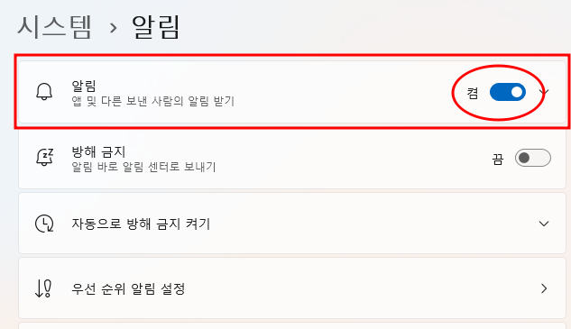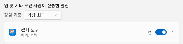 알림센터의 캡처도구 알림이 켜져있어야 합니다!