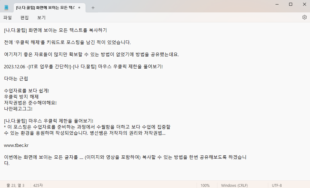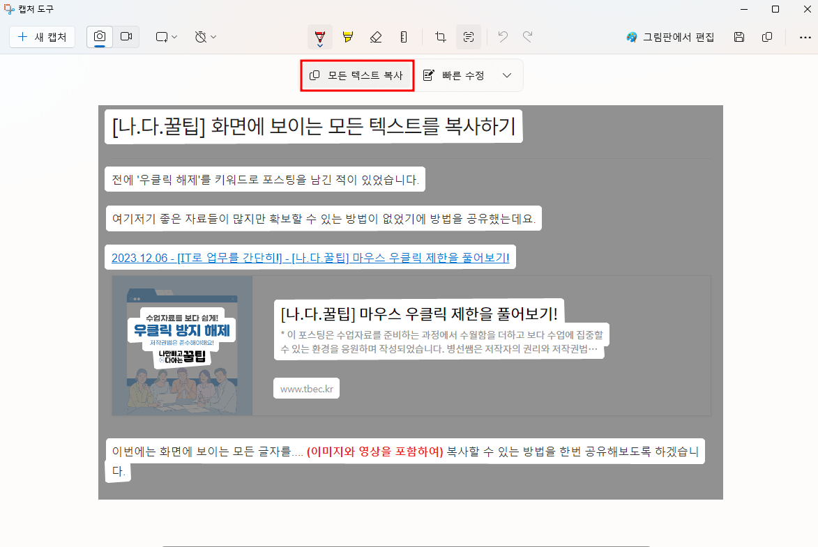 [나.다.꿀팁] 화면에 보이는 모든 텍스트를 복사하기 본문