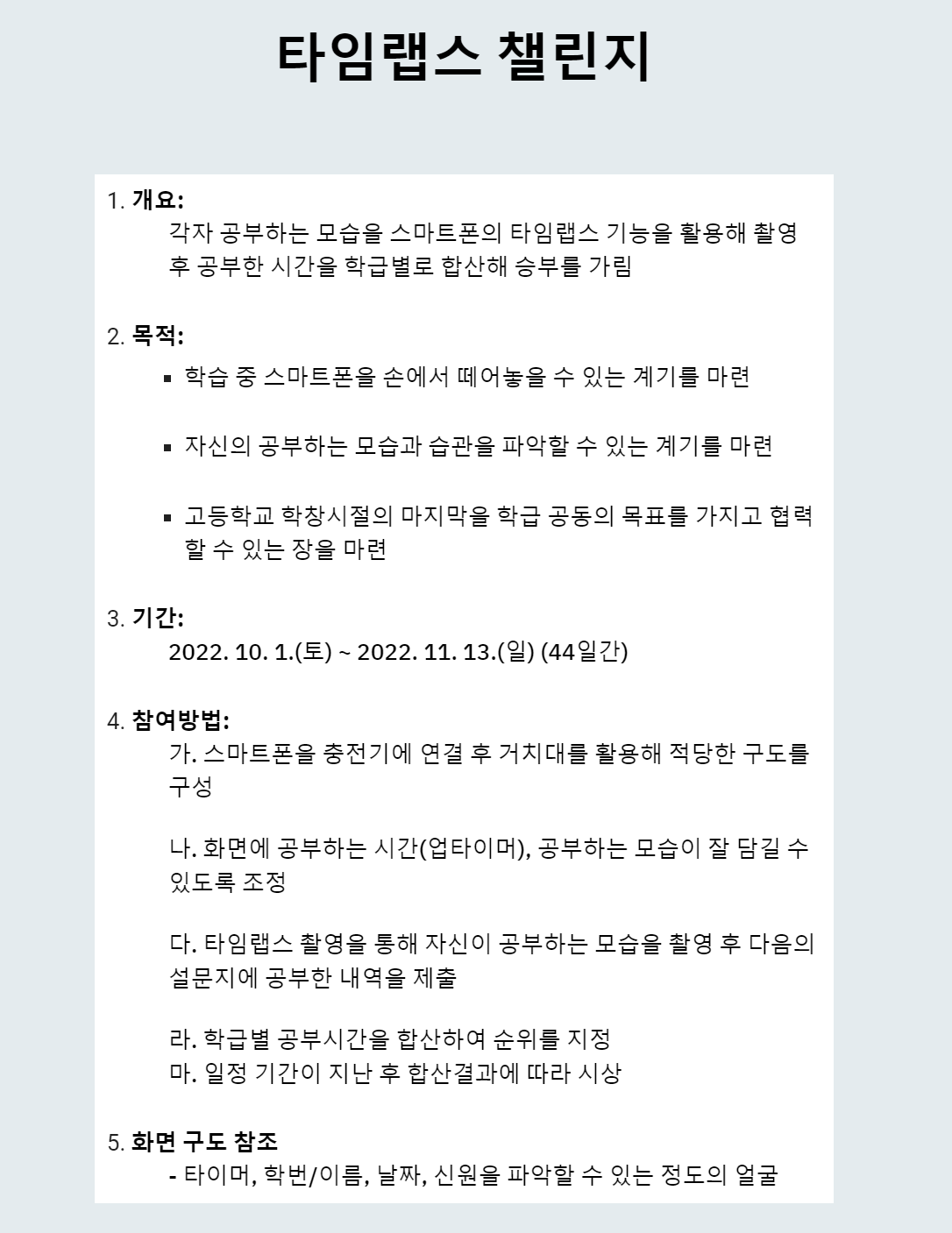 스마트폰을 학생들에게서 스마트하게 분리해보자! - 타임랩스 챌린지 본문