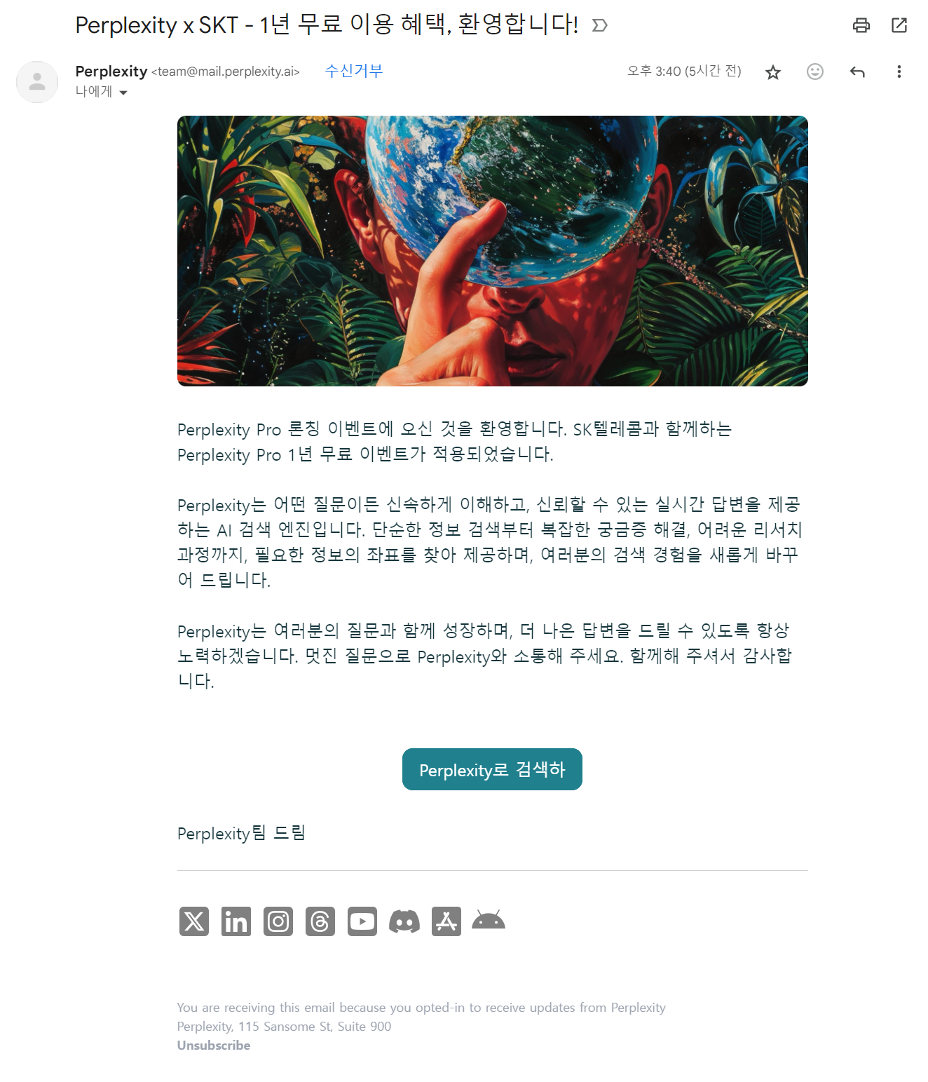 [나.다.꿀팁] SKT 이용자에게 퍼플렉시티 프로 1년 무료이용권! 본문