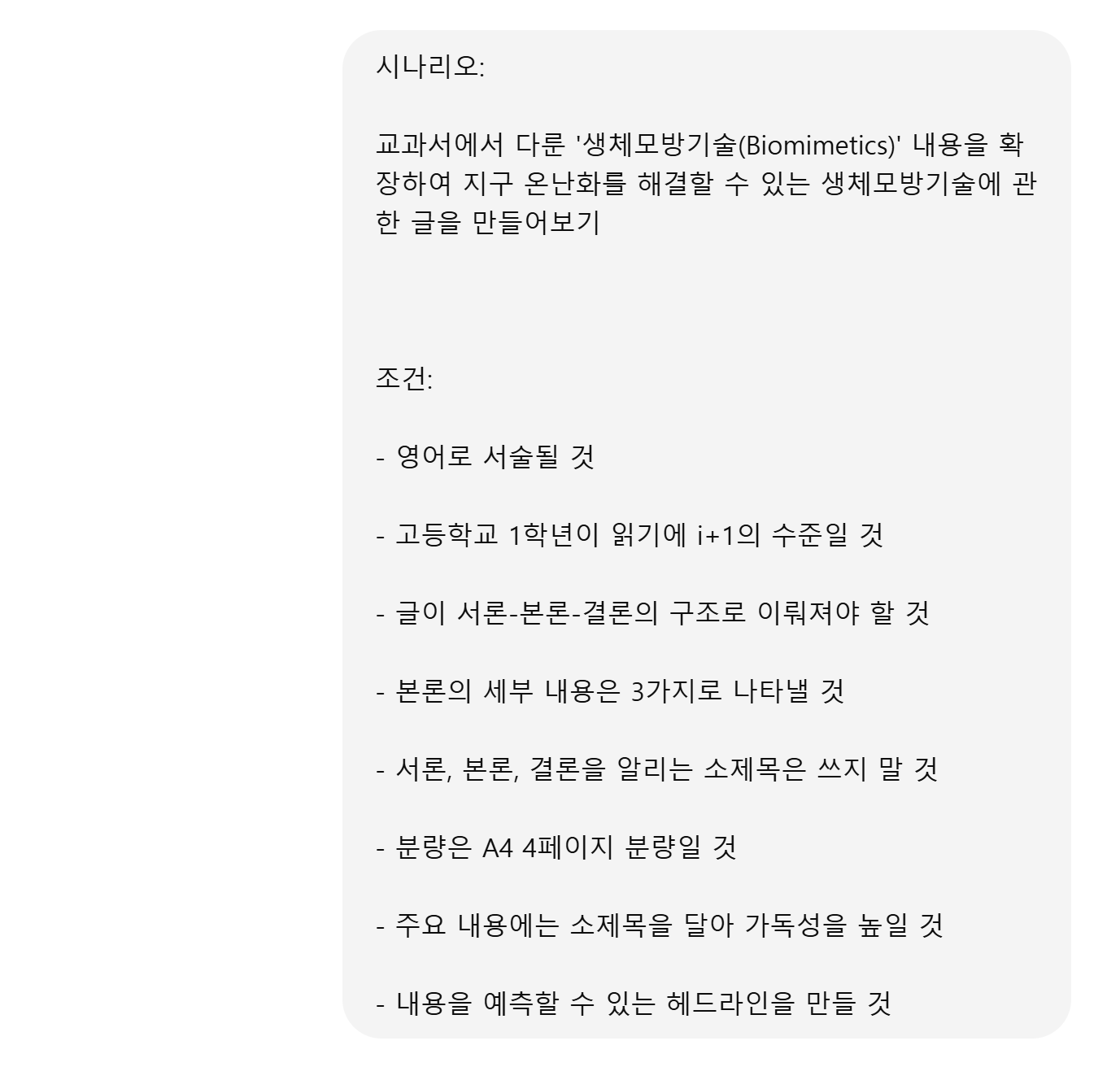 여러가지 방법을 동원해 교사의 요구에 맞는 텍스트를 생성하거나 텍스트의 수준을 변환해보는 방법을 소개하도록 하겠습니다.