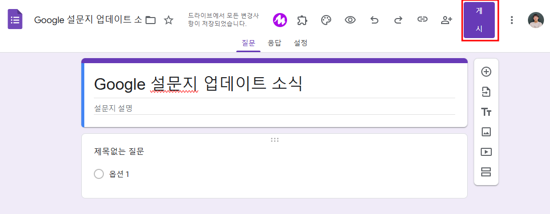 -> 설문지를 생성하더라도 '게시' 하지 않으면 설문 응답을 받을 수 없습니다.