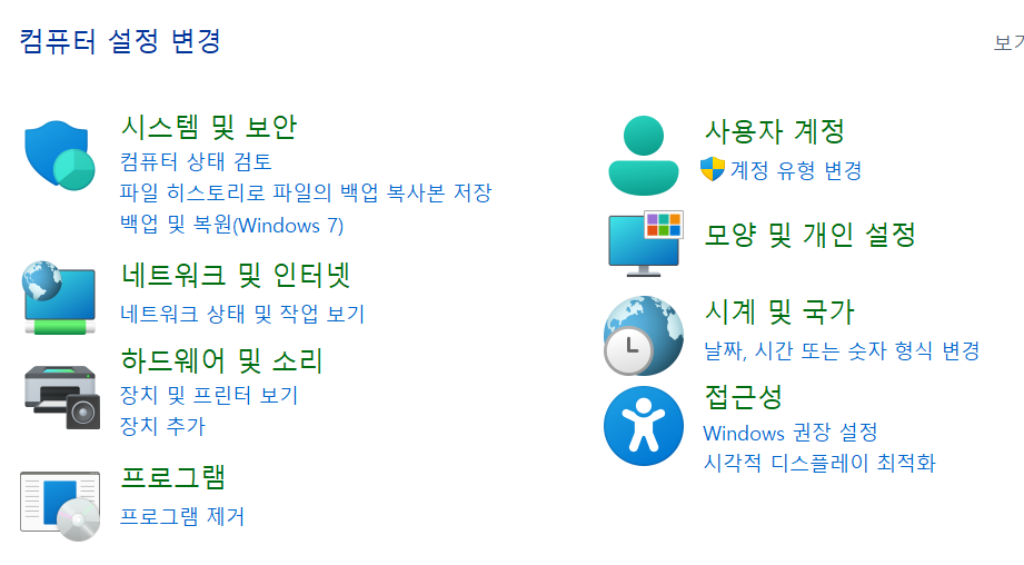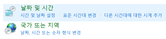 가. 윈도우키 - '제어판' 타이핑하기 - 제어판 들어가기 - 시계 및 국가 누르기