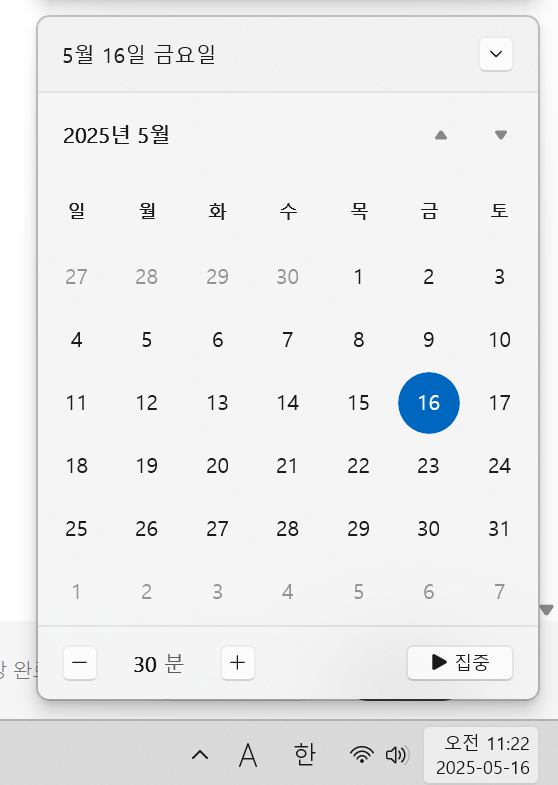 [나.다.꿀팁] 윈도우 11에서 잘 나오던 달력이 안나와요! 본문