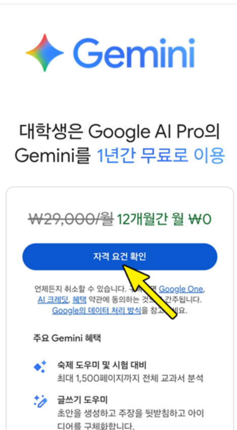 Gemini Pro 학생 1년 무료 혜택을 이용하려면 다음의 조건이 필요합니다.