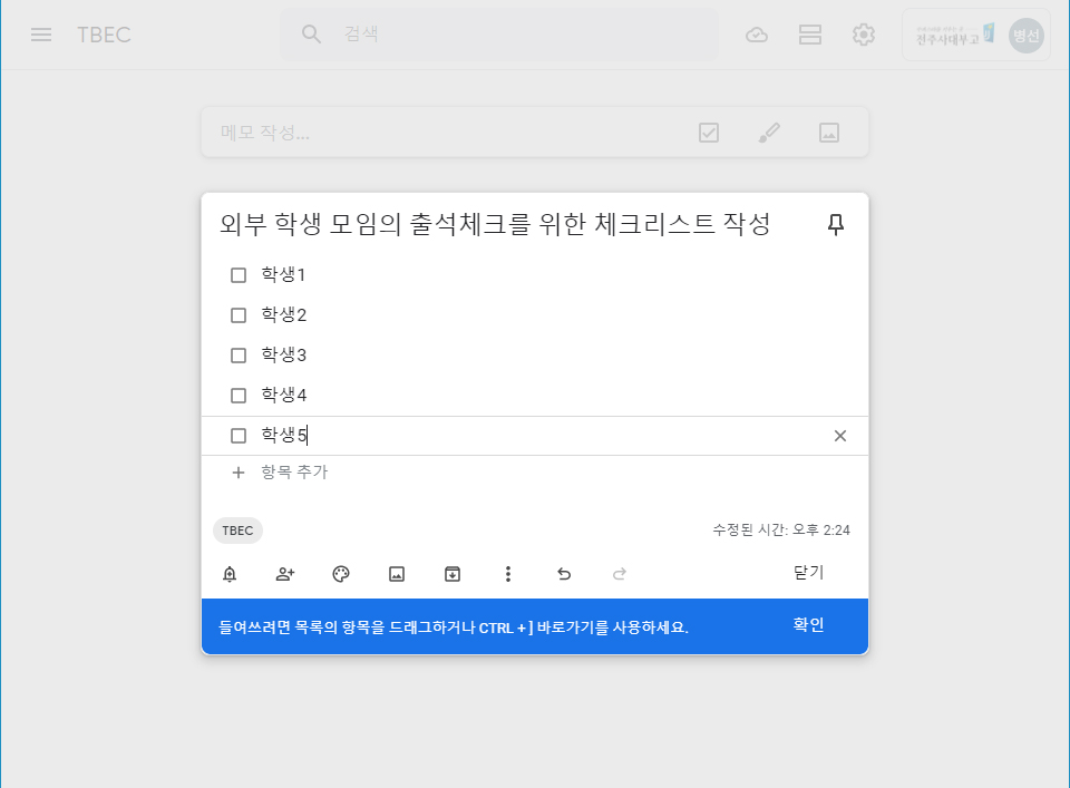 야외에서 출석체크를 편리하게! Google Keep의 체크리스트 기능 활용하기