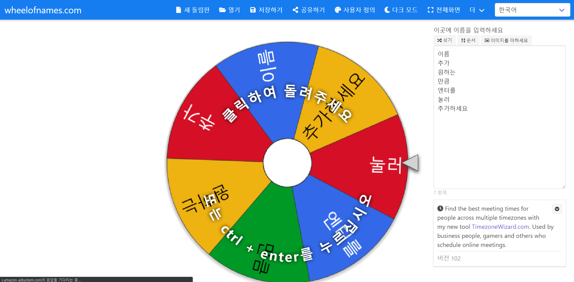 Wheel of Names는 돌림판을 돌려 무작위로 누군가를 선정할 수 있는 프로그램입니다.