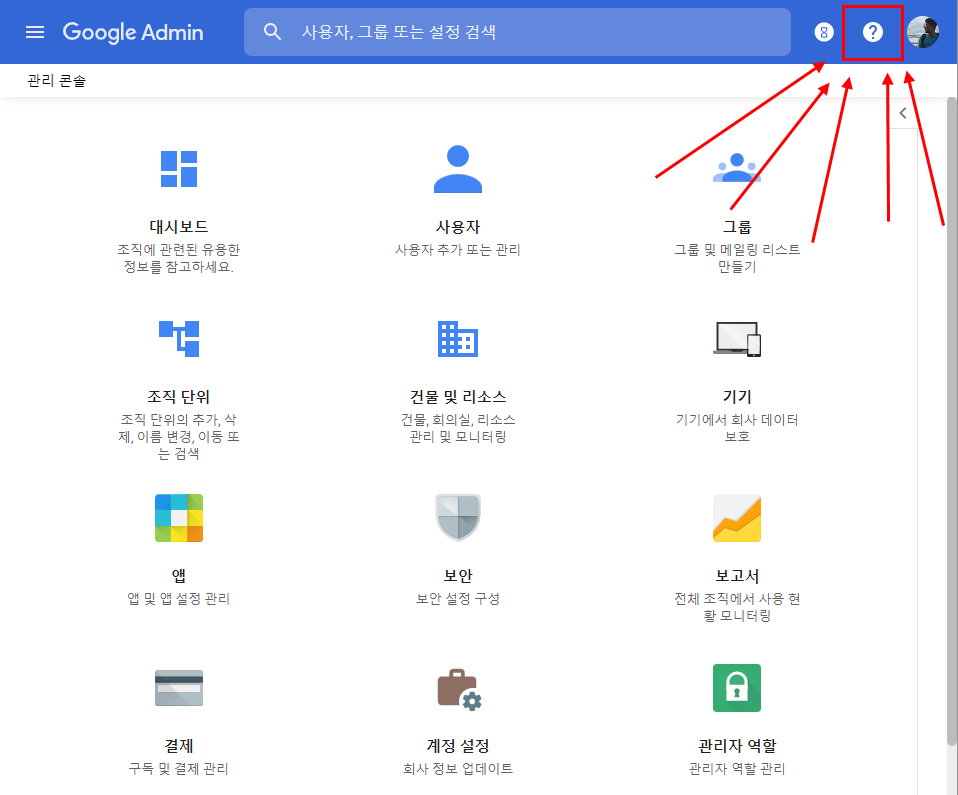 관리콘솔에서 우측 상단의 물음표 버튼을 눌러보면 '도움말 어시스턴트'라는 팝업창이 출력이 됩니다.