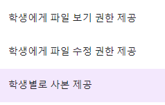 공유정보를 입력 후 저장버튼을 누르면 공유 받는 학생의 드라이브에 공유받은 문서로 출력이 됩니다.