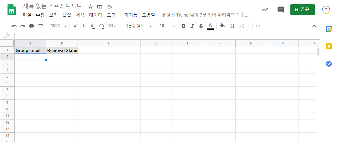 - 새로운 스프레드시트 생성
