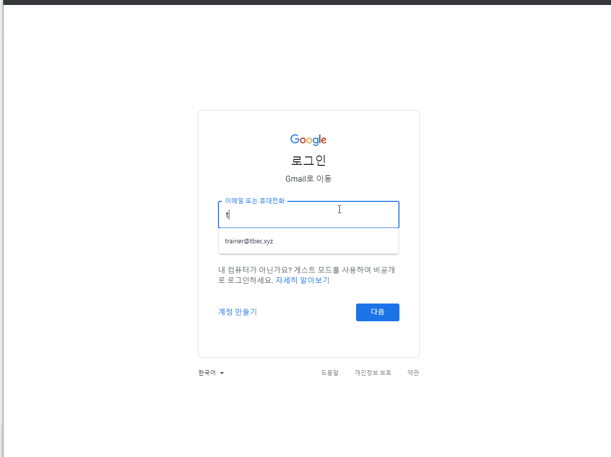 생성된 계정의 Gmail 로그인 예시>