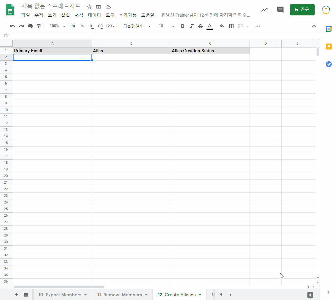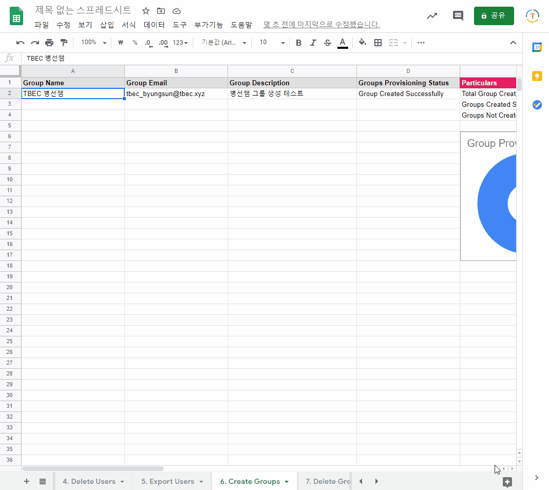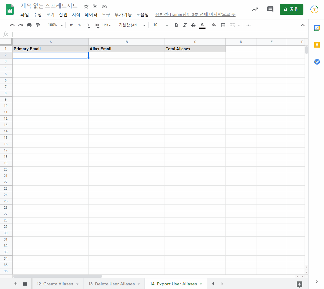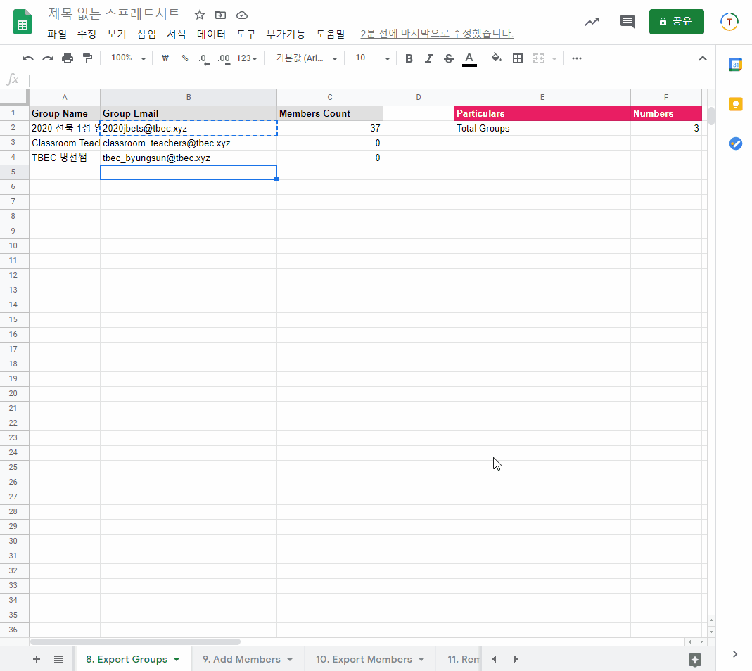 - 도메인에 등록된 사용자들이 시트에 출력되는지 확인한다.