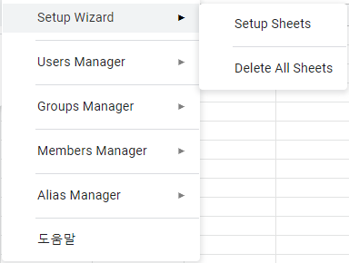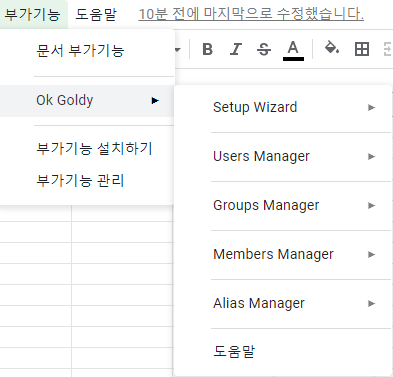 - 부가기능 -> Ok Goldy -> Setup Wizard -> Setup Sheets