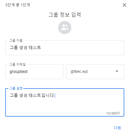 - 그룹 정보를 입력 후 '다음'을 클릭