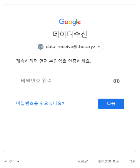 - 이후 출력되는 로그인 창에서 로그인 정보를 입력합니다. (데이터를 옮겨가는 계정 - 새 학교 계정)