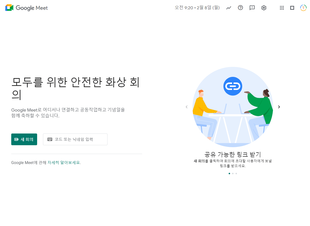 Meet 접속 후 회의를 개설해 배경 변경이 가능한지 확인합니다.