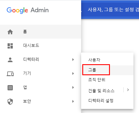 1) 관리 콘솔 -> 디렉터리 -> 그룹을 선택합니다