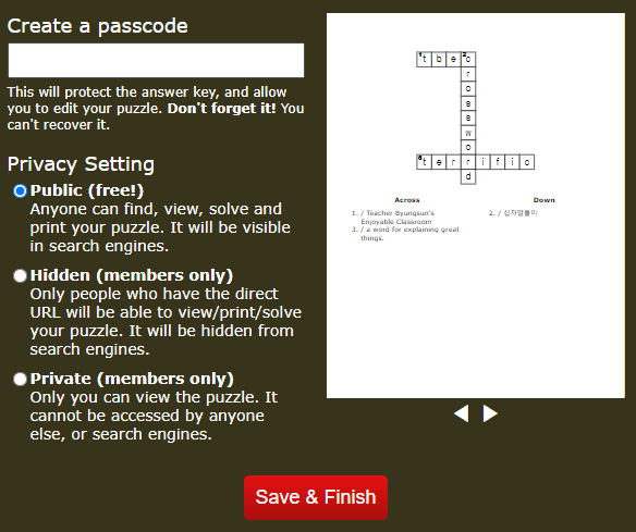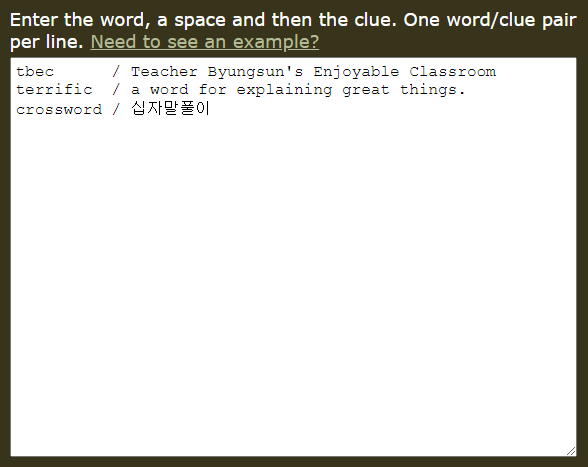 영어 크로스워드, 십자말풀이 만들기 사이트 본문