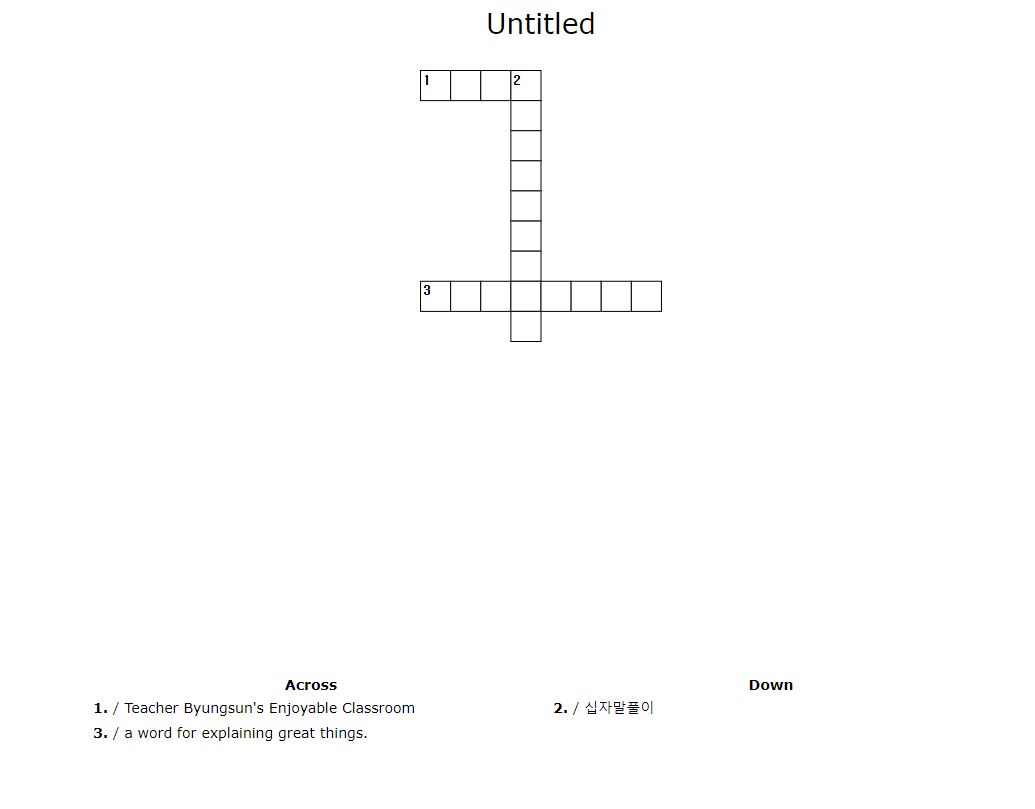 단어와 관련한 활동 중 크로스워드 퀴즈는 고전적이며, 간단하지만 학생들을 괴롭히기(?) 좋은 수단입니다.