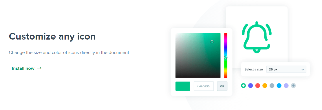 마음에 드는 아이콘을 선택하면 insert 버튼과 함께 customize할 수 있는 옵션들이 나타납니다.