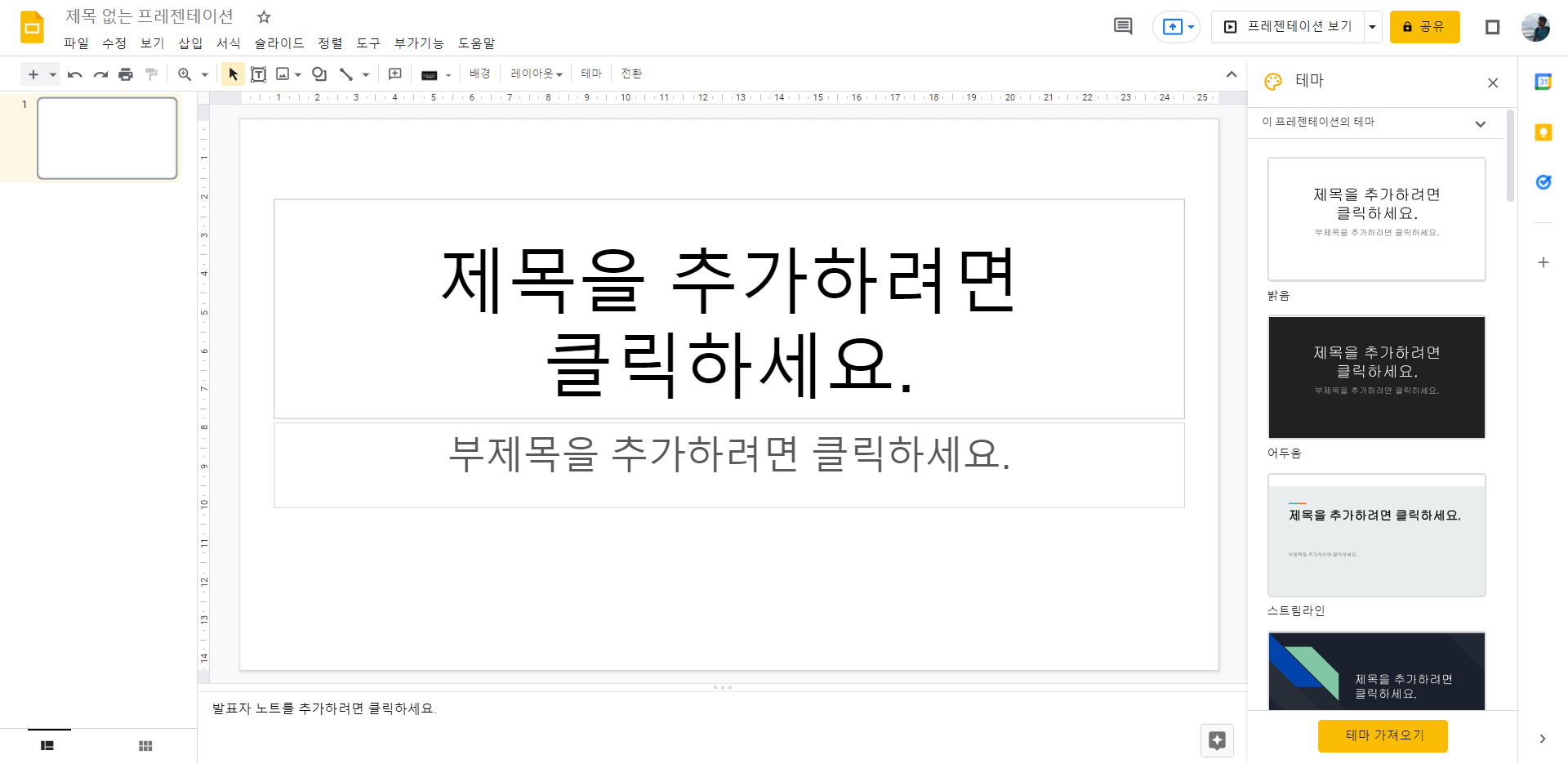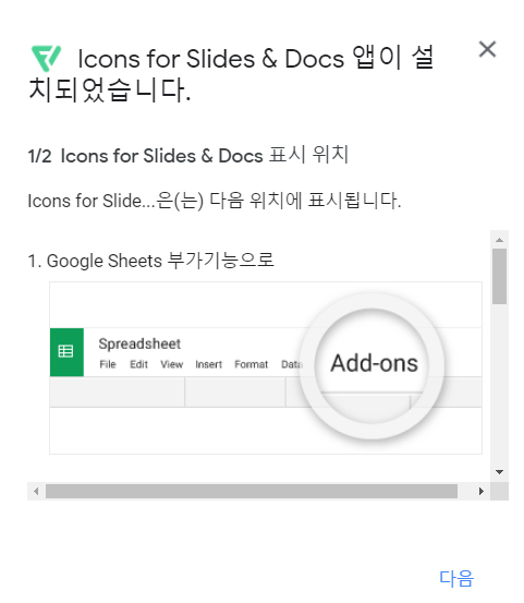 구글 슬라이드에서 애드온을 추가하는 방식으로 한번 설치해보겠습니다.