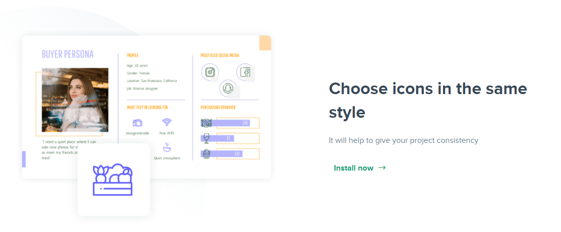 디자인의 일관성을 유지하기 위해 같은 스타일의 아이콘을 제공합니다.