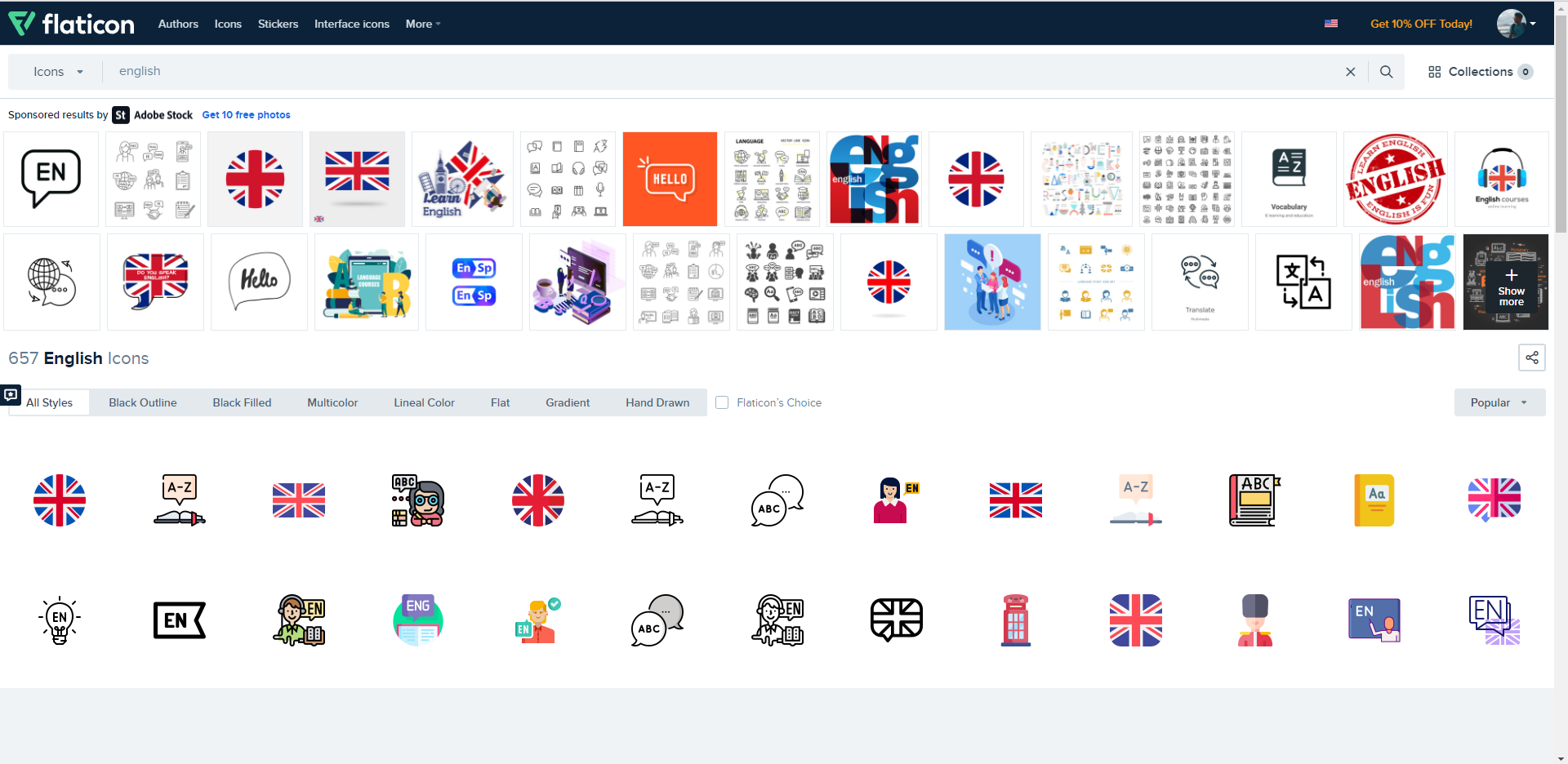 제가 의도했던 것은 english language인데, 이 사이트에서는 형용사(영국의)로서의 english 검색 결과를 보여줘서 유니언잭 깃발이 상당히 많이 나오는 것을 볼 수 있습니다.