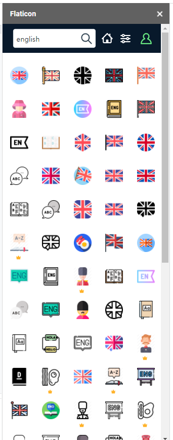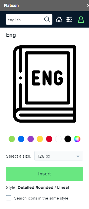 english라고 검색했을 때 사이트에서와 동일하게 아이콘이 출력되는 것을 확인할 수 있습니다.